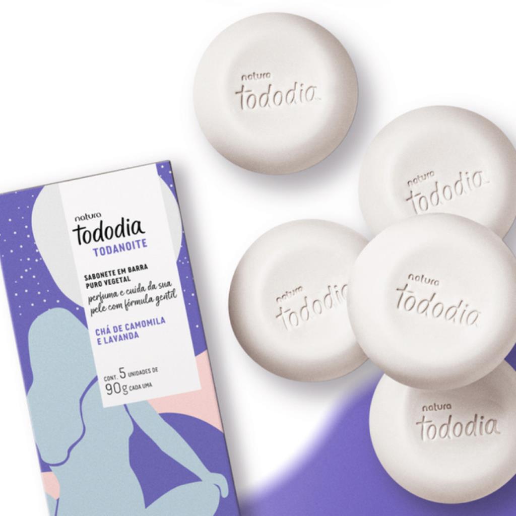 Inicie seu ritual de autocuidado noturno com um banho relaxante. O Sabonete em Barra Tododia Todanoite limpa delicadamente e envolve seu corpo com uma espuma cremosa e a fragrância relaxante* de chá de camomila e lavanda, promovendo uma experiência deliciosa. *Comprovado via pesquisa sensorial com consumidores.